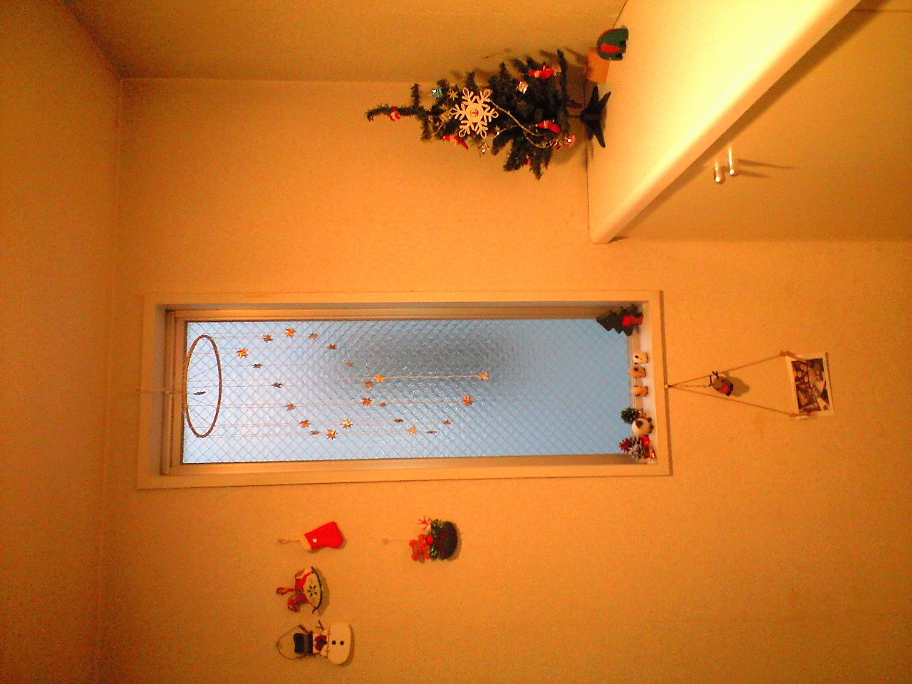 玄関はこれでも少しは派手ですし、トイレも狭い空間なのでクリスマスの支度したな、と分かりますが、リビングは至って地味。