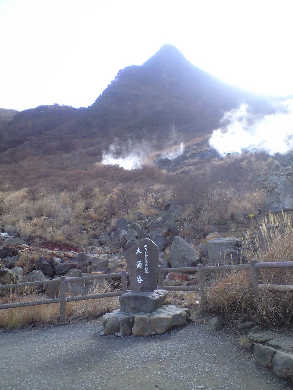 大涌谷に近付くと、白い煙が何箇所からか立ち上り、ゴンドラの中にまで硫黄の香りが漂ってきます。ここまで来ると、「あったかいね〜」と言っていたのが、結構な風が吹きますが、寒い!と縮こまるほどではなく絶好の行楽日和のうちでしょう。