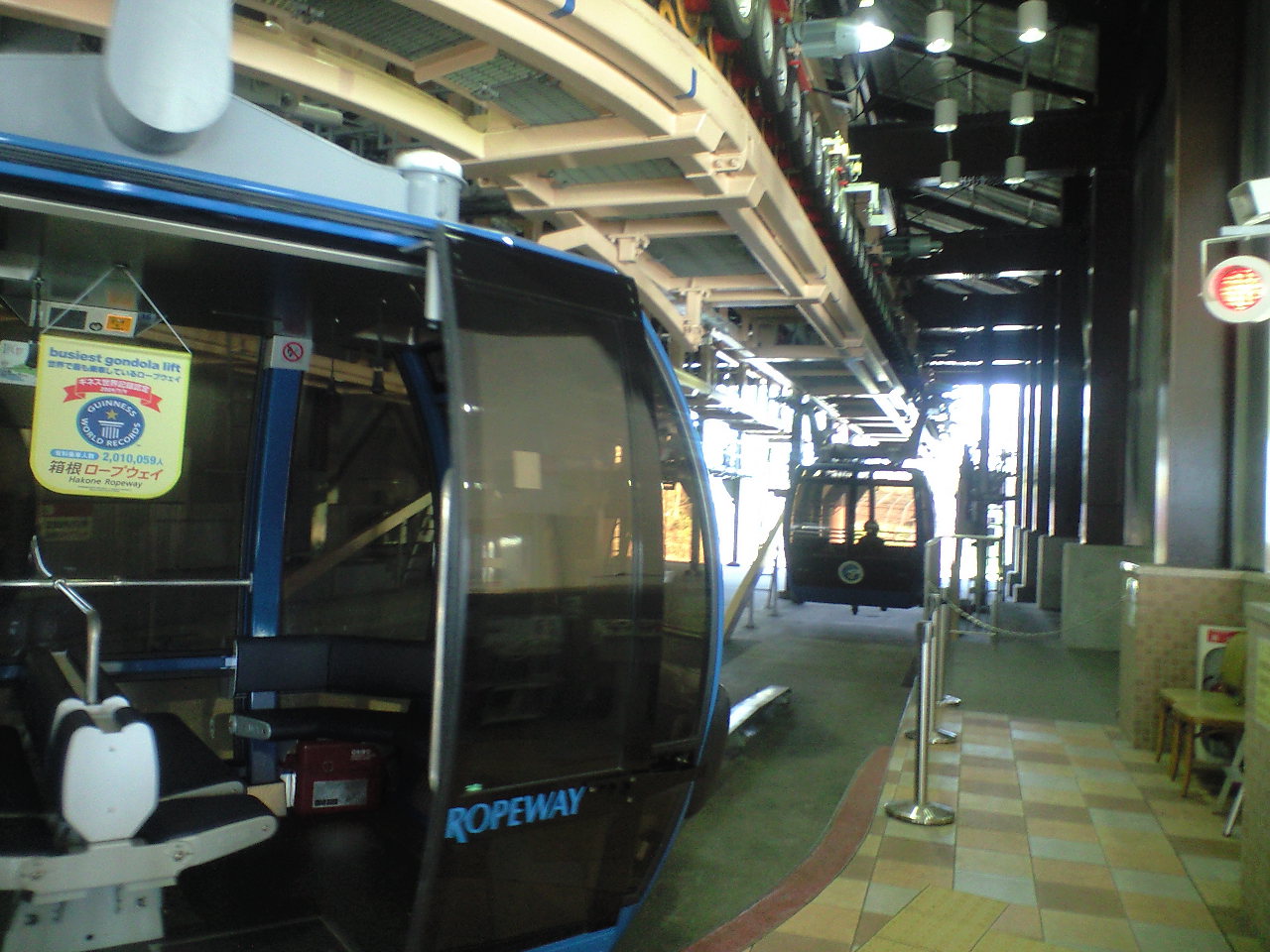 その後、一休み→本館界わいで買い物→船に乗り、湖尻へ。(団体さん多数。湖面からの風景も美しい)湖尻からは小田急系列のロープウェイに乗り大涌谷へ。このロープウェイ、乗客数世界一でギネス申請されたばかりだそうです。