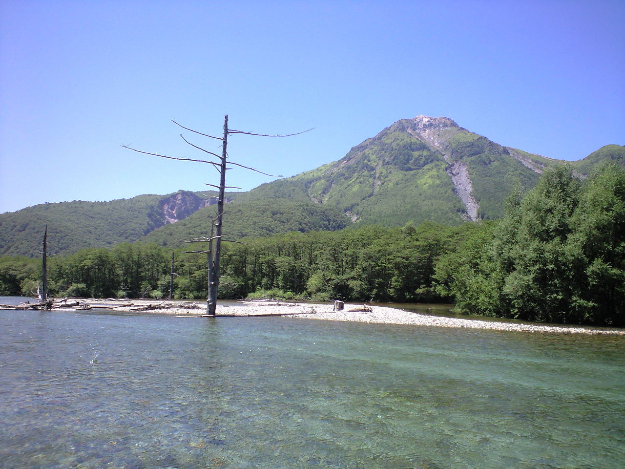 大正池からスタート、ミーハーに帝国ホテル経由、ウェストン碑も見て河童橋で終わり、と言うのが、今回の上高地初心者コースでしたが、川の水の美しさ、夏山の美しさ、本当に三度ものトライアルの甲斐がありました。