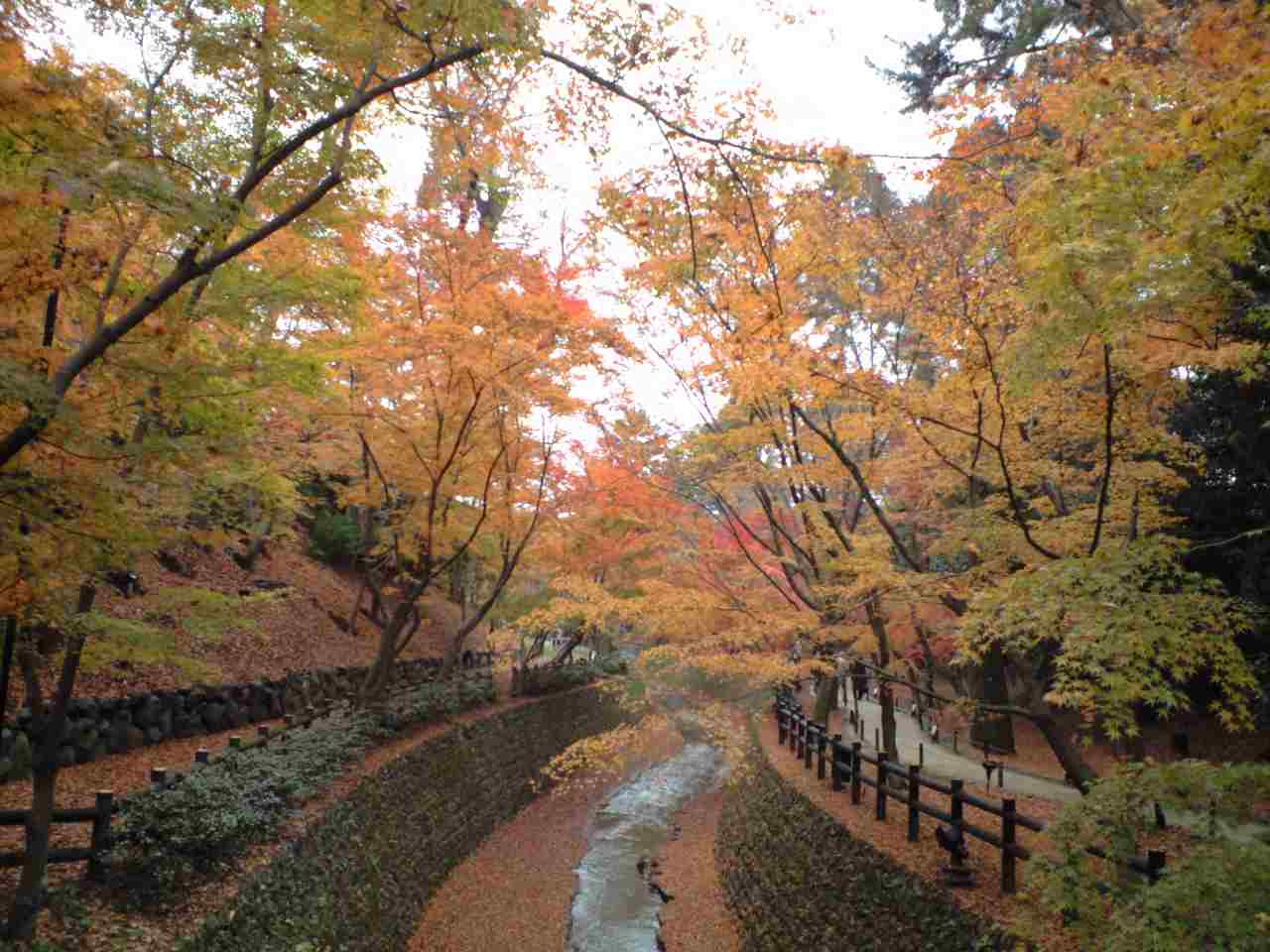 いやはや大正解! 昨日がやや色褪せな紅葉気味だったことも有り、まだ見頃の美しい色合いに感動。こちらは我が古い携帯の辞書では変換出来ない位ですから、比較的新しい紅葉スポットかも知れませんね。