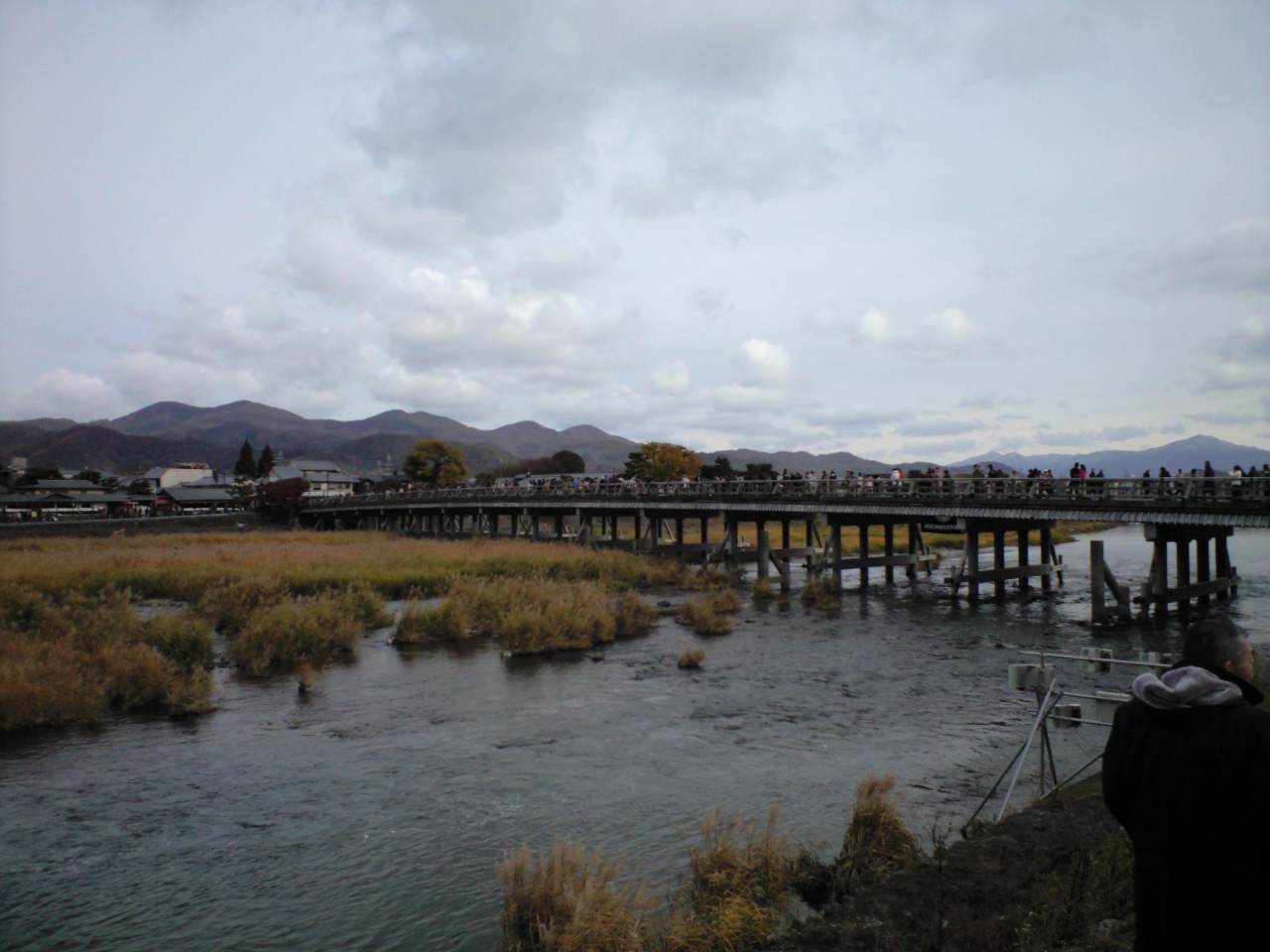 いつも混んでいる事にかけては、鎌倉の小町通りとどっこいどっこいの嵐山ですが、渡月橋は片側通行で人ビッチリ!