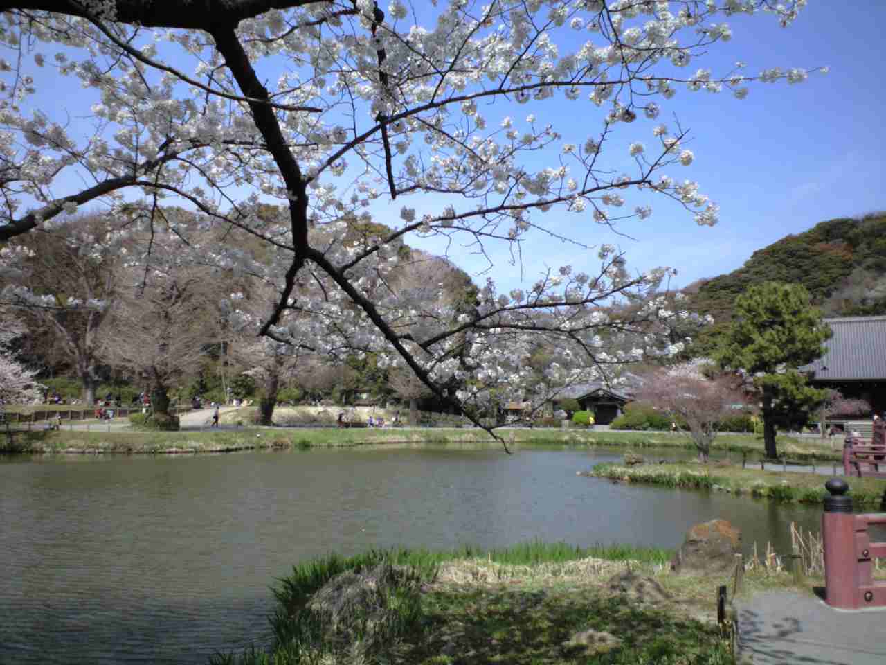 参道を通って帰途につきましたが、リスがちょろちょろと駆け回り、桜の花びらを食べていました。鎌倉からあちこち経由してやって来たタイワンリスでしょうね。最後は椿の中に入り込んでいました。残念ながら写真には入りませんでした。