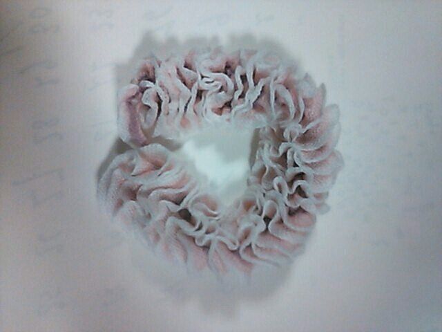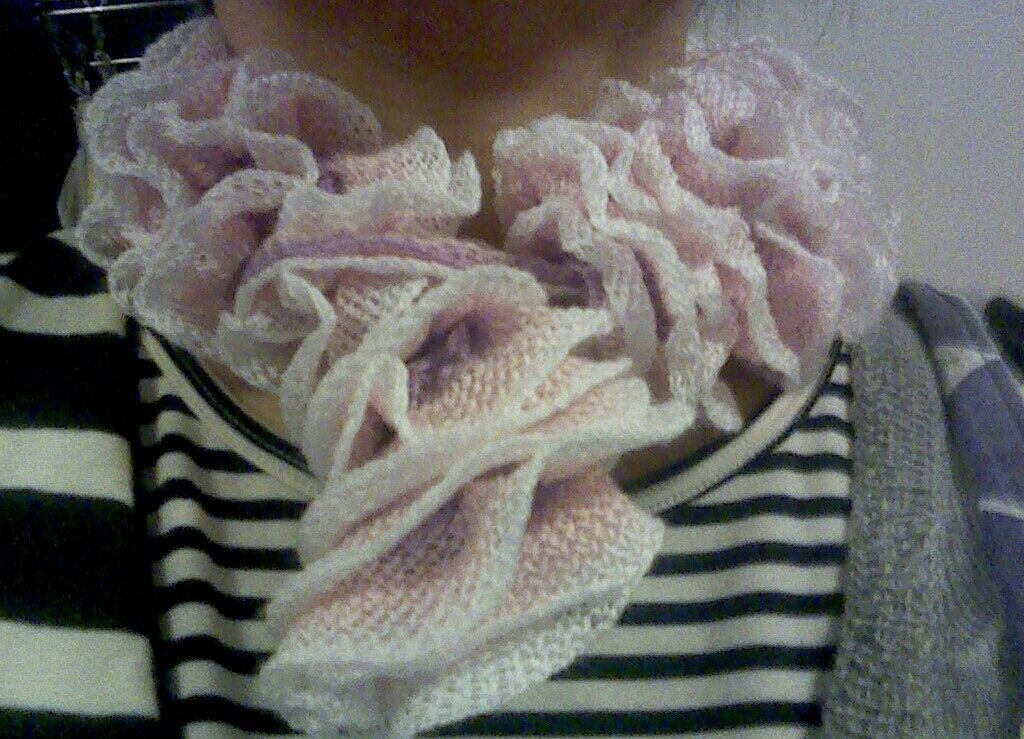 と、ひんしゅく買いながら、勝手に命名のフリルヤーンのミニサイズマフラー、もといネックウォーマーでしょうか。