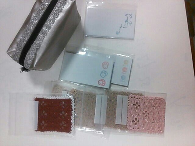 戦利品のポーチ、ぽち袋、手編みコースター。コースターは買い占めです。