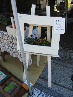 イーゼル仕立ての花鉢置き。3000円なり〜。