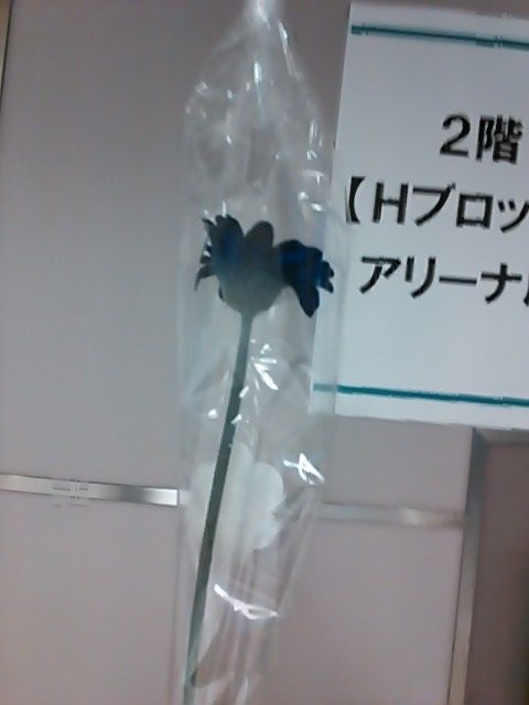 投げ入れの花と言うのを始めて買ってみました。四大陸ではとても熱心なファンの方が「投げ込んでください」と45リットルくらいありそうなポリ袋からぬいぐるみを取り出して配っておられたのを投げ入れて、リンクの手前に落下というトホホでしたが、今回、2階のS席(昨日は3階席で投げ込み禁止)で、駆けよれば確実にリンク内に入れられると思ったのと、ここは何としても小塚選手にエールをと思ったのでした。花一輪で500円というのは世間ではお高いのですが、スケート会場では許される金額らしく、そう思った私を含め、多くの方たちがお花売場で出来るだけシャンとした花、好きな色の花、選手の雰囲気に合う花を探し求めておられました。
