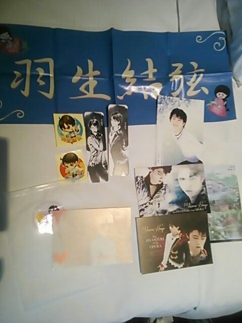 そして、フリーの前、早めについた私たちが、大きなプーさんのぬいぐるみを持った女子高校生らしいかわいらしい子たちを見て「かわいいね〜」と話していたら、保護者らしい女性が近付いてきて「日本人?」と聞きます。ハイと言うと、手振り身振りを交え日本語で「これを貰ってやってほしい」との事で、彼女たちが作った大力作の羽生君セットをくれました。