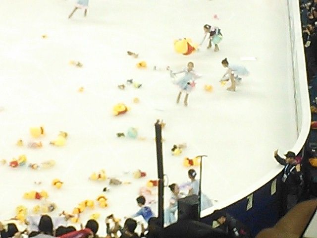 女子の方、見られず残念でしたが、みんな頑張りました。男子フリーの時の席は関係者席の隣(キスクラのほぼ対角線上)で、宮原知子ちゃん、村上佳菜子ちゃんなどがリラックスした様子で、優勝したトゥクタミシュワ選手の隣に座っておしゃべりをしていましたが、席にまで押し寄せてサインを求める人たちがいたのはいただけませんでしたが、恐らく日本人観戦者ではないと思うので、まぁ、仕方ないのかなぁ、フィギュアスケートの人気向上のためにはと思いました。