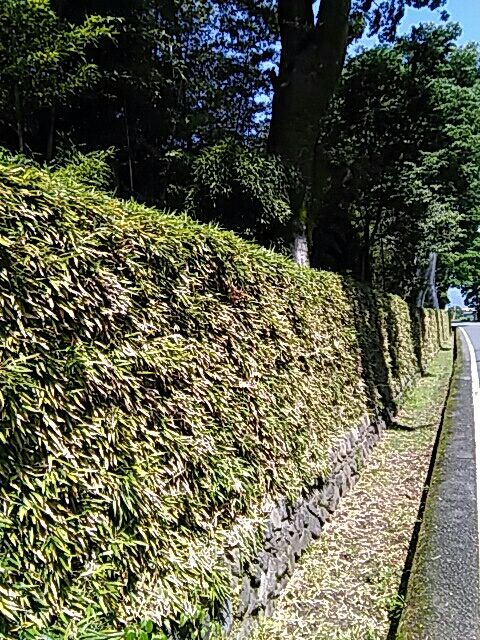 お庭で説明のあった桂垣。バス停と離宮の間を桂川沿いに歩くと見られます。竹に切り込みを入れて編み込む、盆栽的な垣根です。