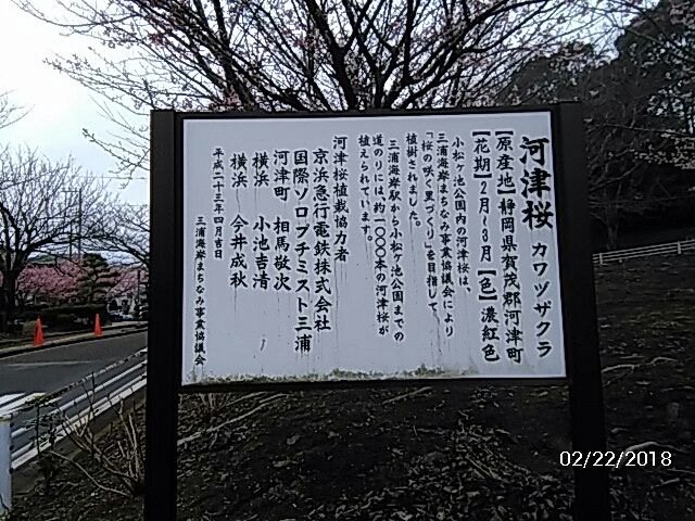こちらの河津桜の由緒を書いた看板。比較的新しいのです。平成23年と言えば2011年、本場の河津桜を見にいったよりだいぶ後ですし、初回、ここの河津桜を見たよりも後でした。(^-^)