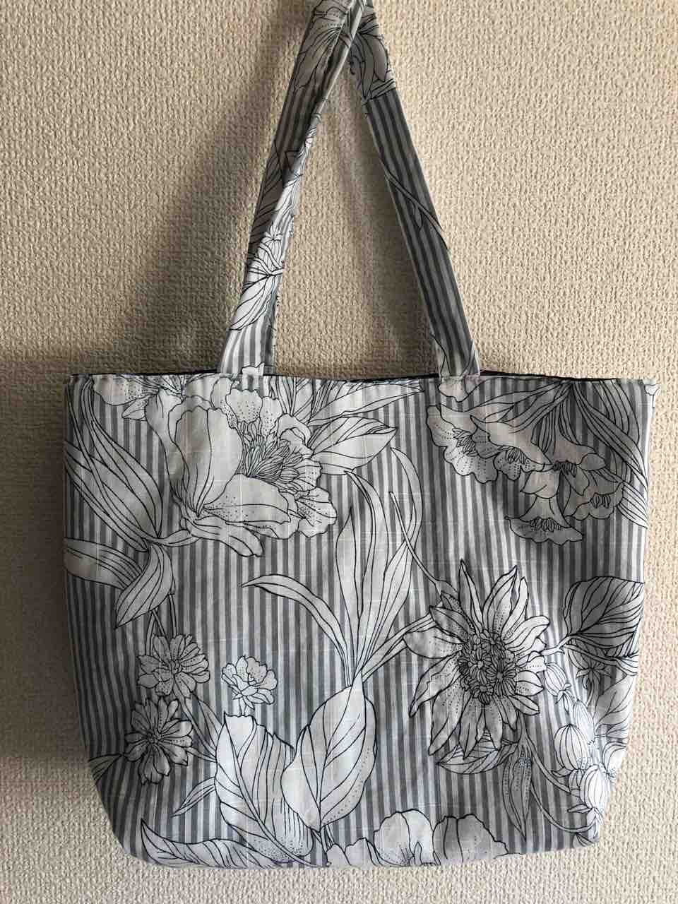 高橋マジックと勝手に呼んでいる、裏・表の重ね方をして、脇を縫って、ひょいとひっくり返して、マチを作って、持ち手を付けて、いっちょあがり〜!となる訳ですが、詳しい方法はテキストをご覧ください(勝手に回し者(^^ゞ)。
