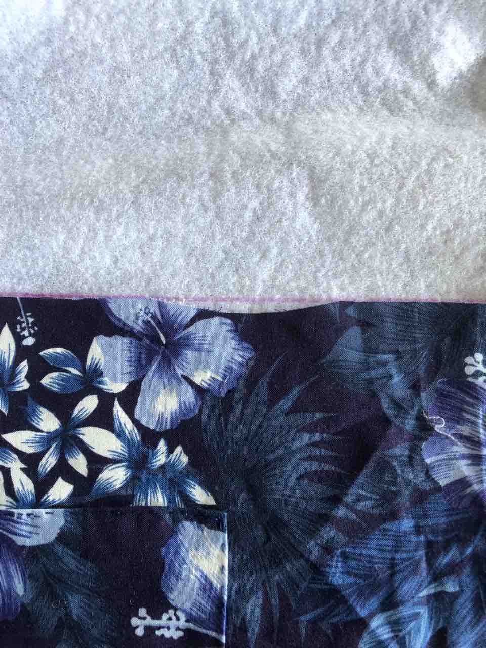 こんなえぐれ位、私の技術力をもってすれば、何と言う事はない・・・な〜んて技術力がない人が言って構わない程度のえぐれです。重ねているのはキルト芯。100均もので薄手です。
