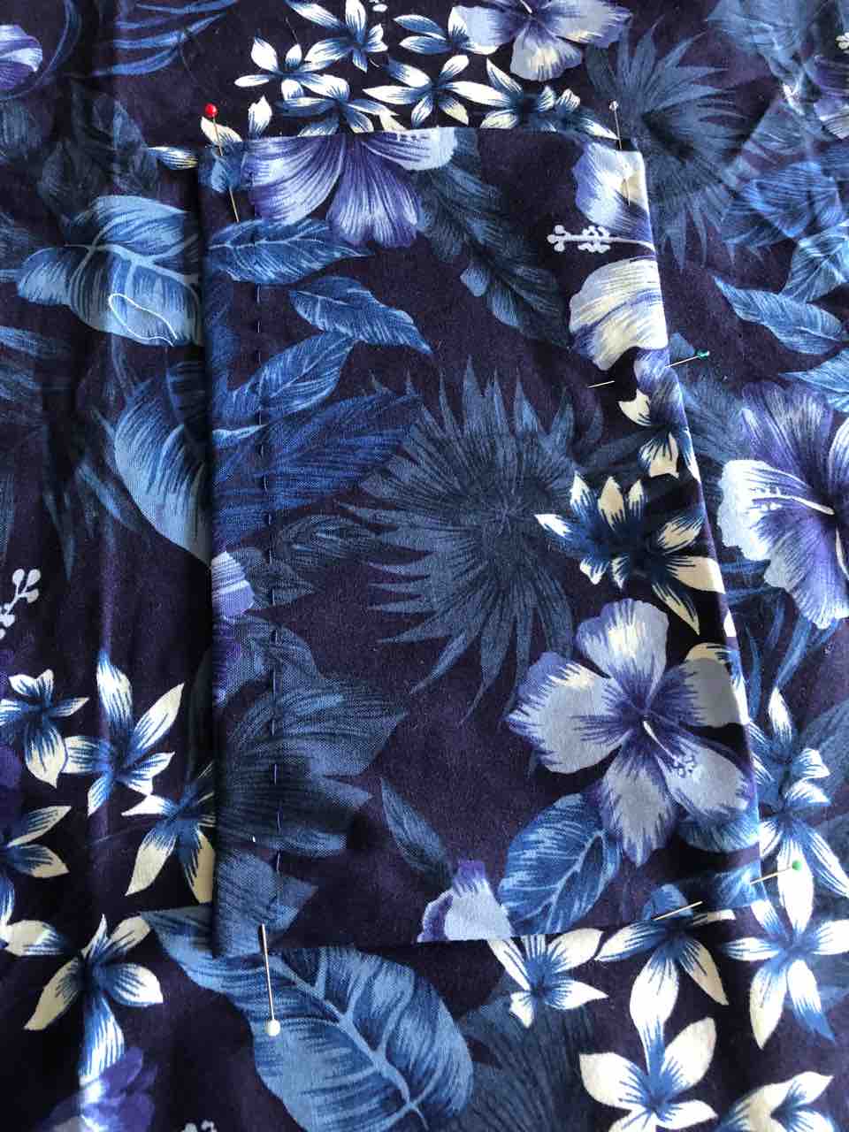 そして、トロピカル柄は裏地にしますが、オリジナルには内ポケットはないのですが、適当に付けました。あくまでも適当です。あまり真面目に考えると、手が動かなくなってしまいます。