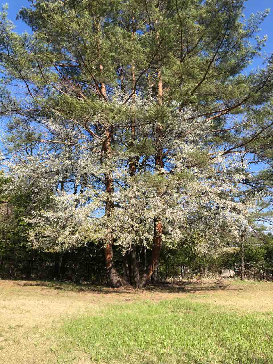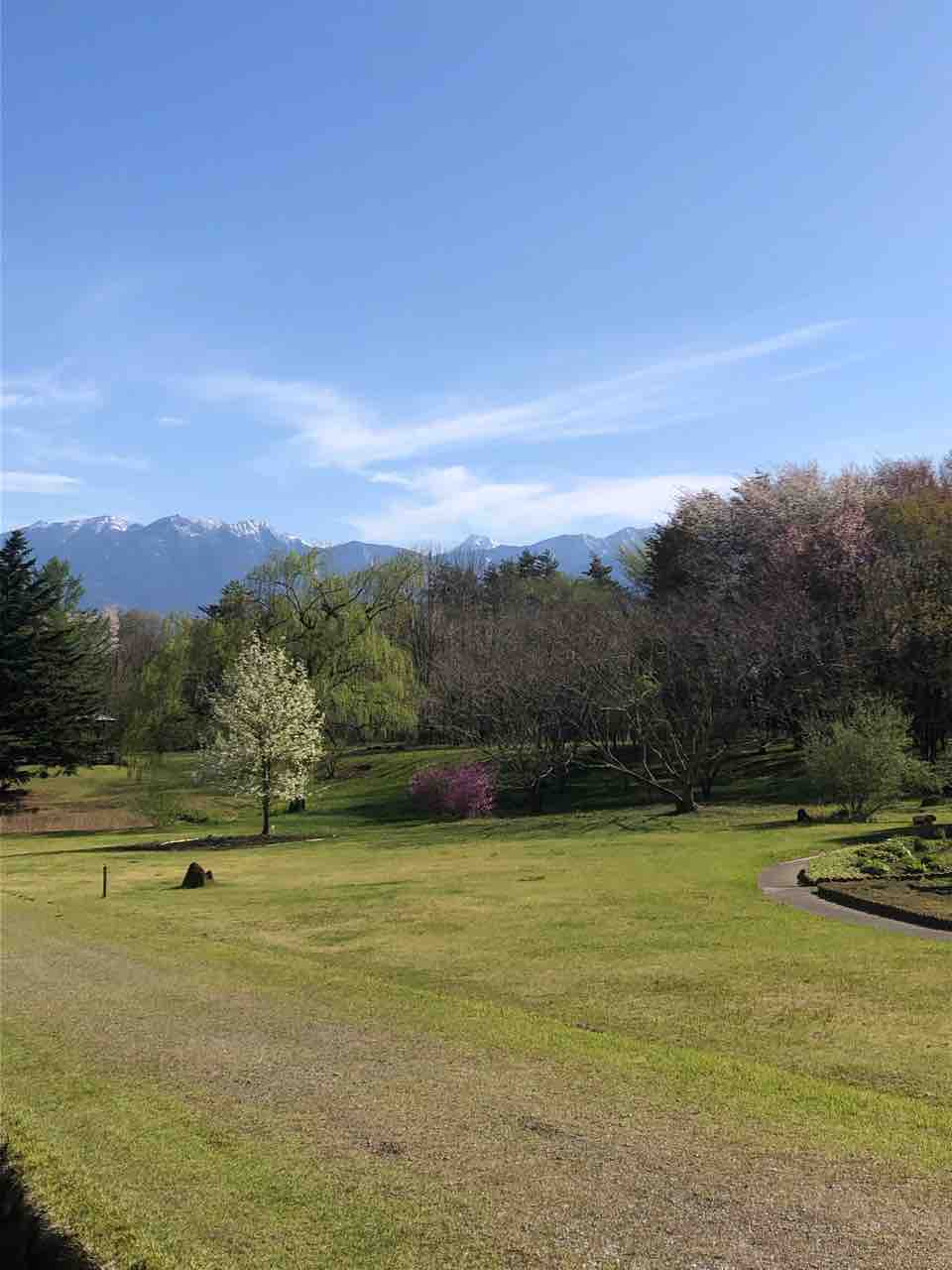 花パークフィオーレの駐車場から見える八重桜が満開でした。