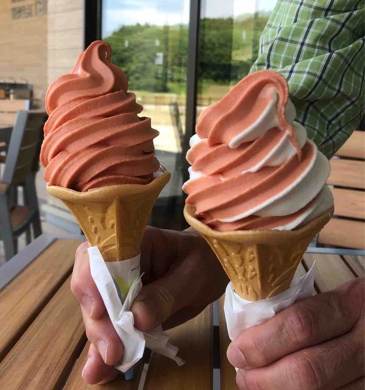 昼食後に出て来たので、カフェレストランで販売のテイクアウトのソフトクリームを食べました。