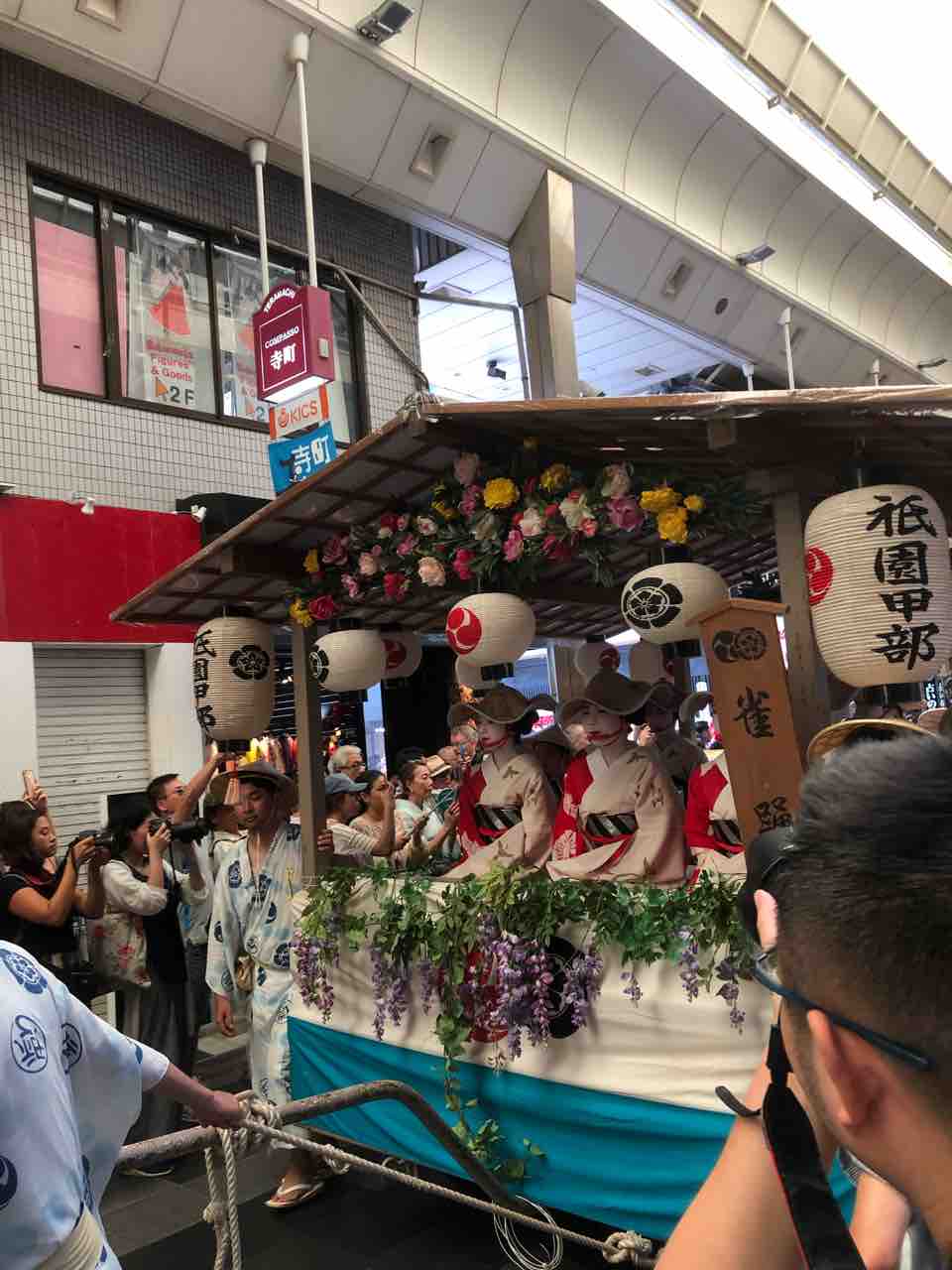 右往左往して、結局、寺町京極へ出て涼みつつ、花笠巡行を見ようと足を向けると、ガラーンとして楽勝!