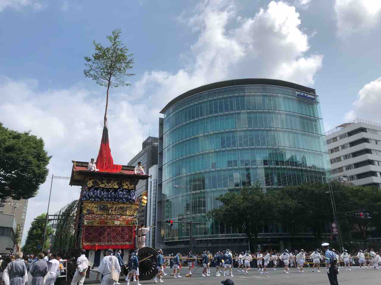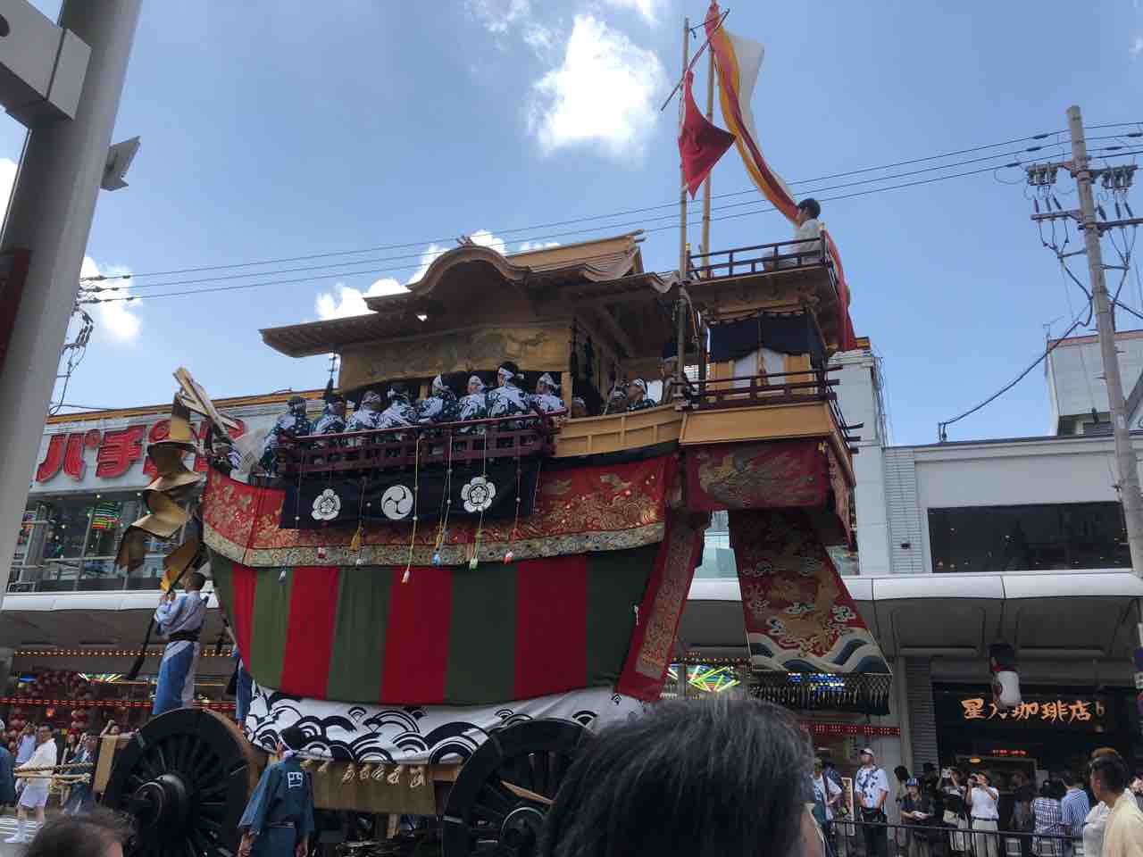 ギシギシと音を立てて進む大船鉾。巡行のしんがりです。