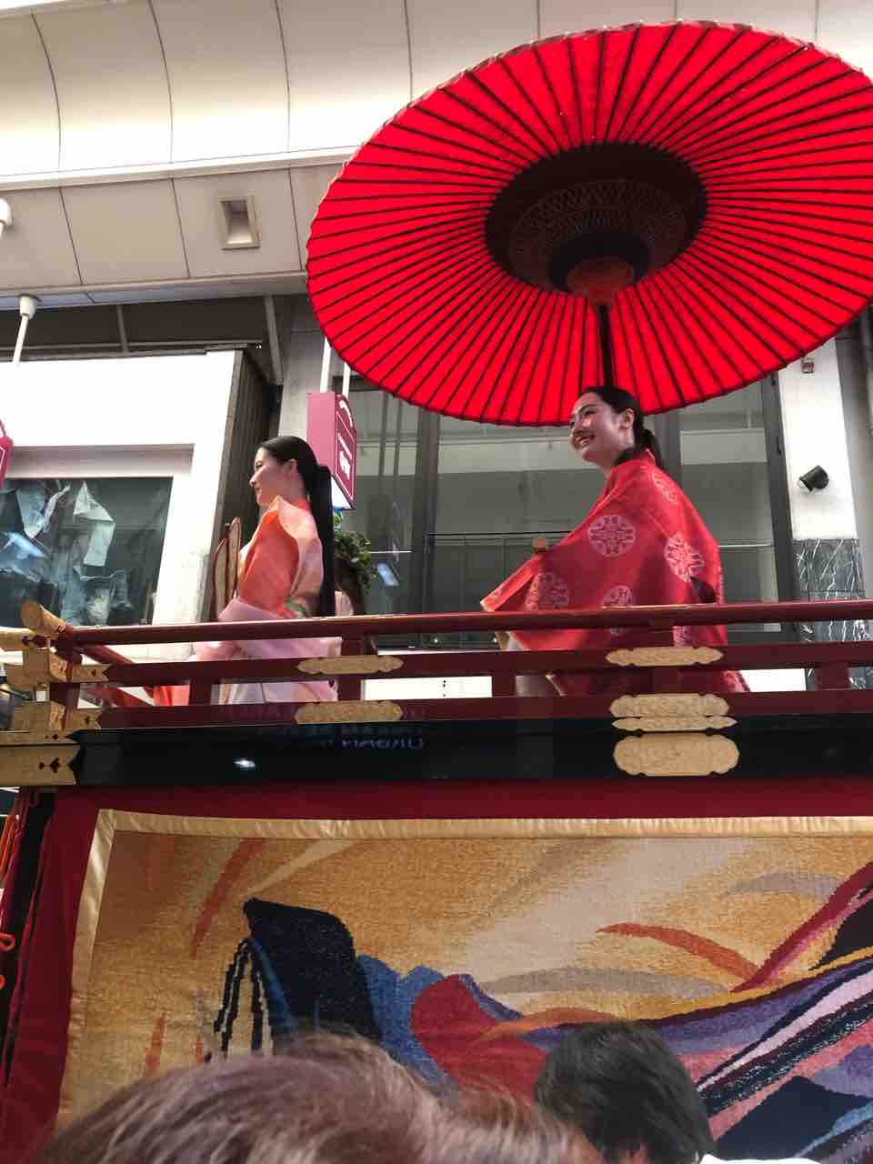 花笠巡行は、前後に分かれていた山鉾巡行を1つにしてしまってから、後祭の代わりに行われていたという事で、伝統が浅いからか、ザ・オトコ祭りという感じの山鉾と違って、女性も活躍出来る、手垢のついた言葉ですが、民主的な感じが良い感じ。