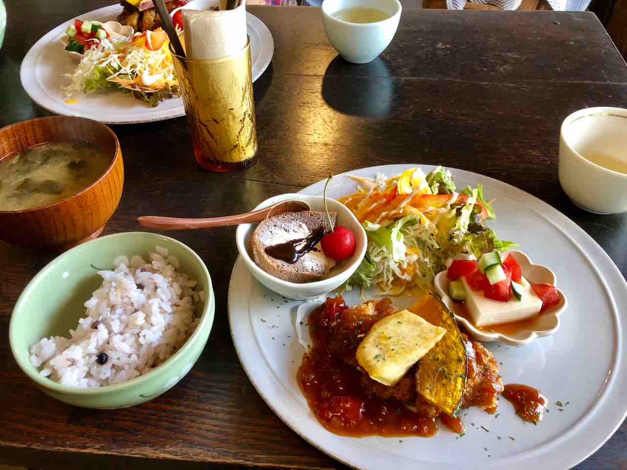 護国神社境内にある手作り感あふれるカフェで、1番乗りで、私たちだけ?と思ったら、次々に意識高そうな若い人たちがご来店。程よい混み方でしばしくつろげました。