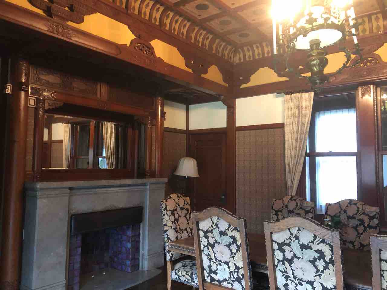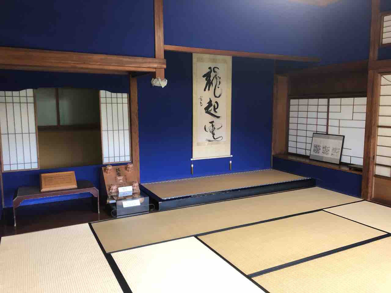 富豪の別荘部分と、旅館になった部分と、趣が違いますが、旅館になってから、塗られたという壁のラピスラズリ色やベンガラ色が鮮やかながら、下品にならずでございます。