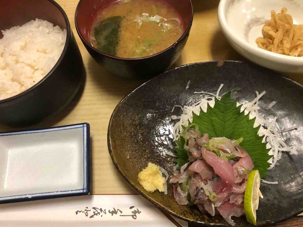 駅前商店街のレストランは観光地値段なところが多いのですが、坂を下って左側に見つけた間口の狭いお店で食べたアジたたき定食が美味しかった。995円というお値段も当地ではお安い方みたいで嬉しいです。