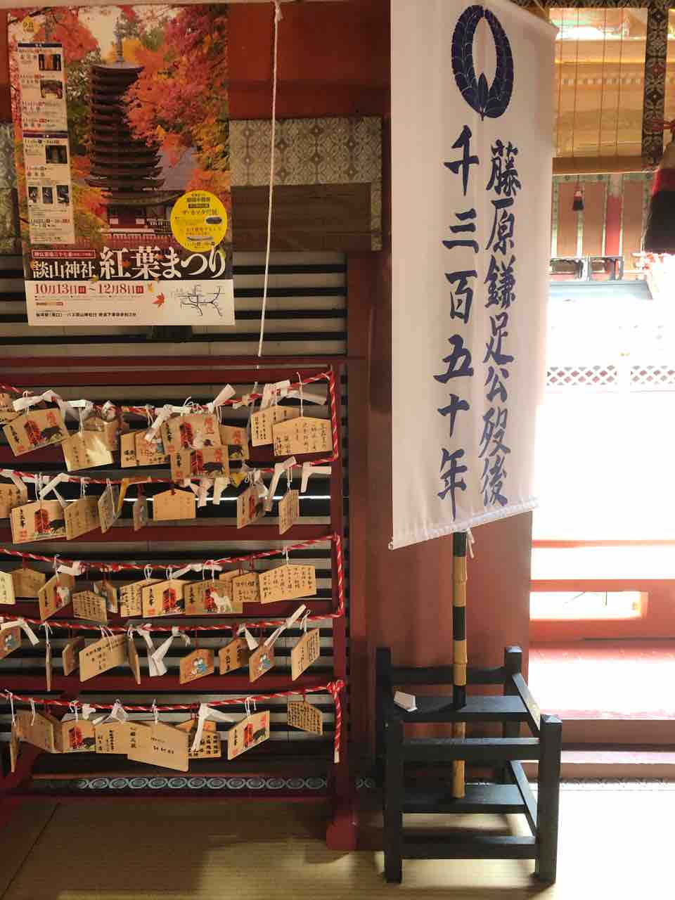 藤原鎌足公、1350年も前の人なのね。と言う割には、展示されていた江戸時代に描かれた大化改新の絵巻は、平安装束で、昨日の三十六歌仙絵みたいでした。