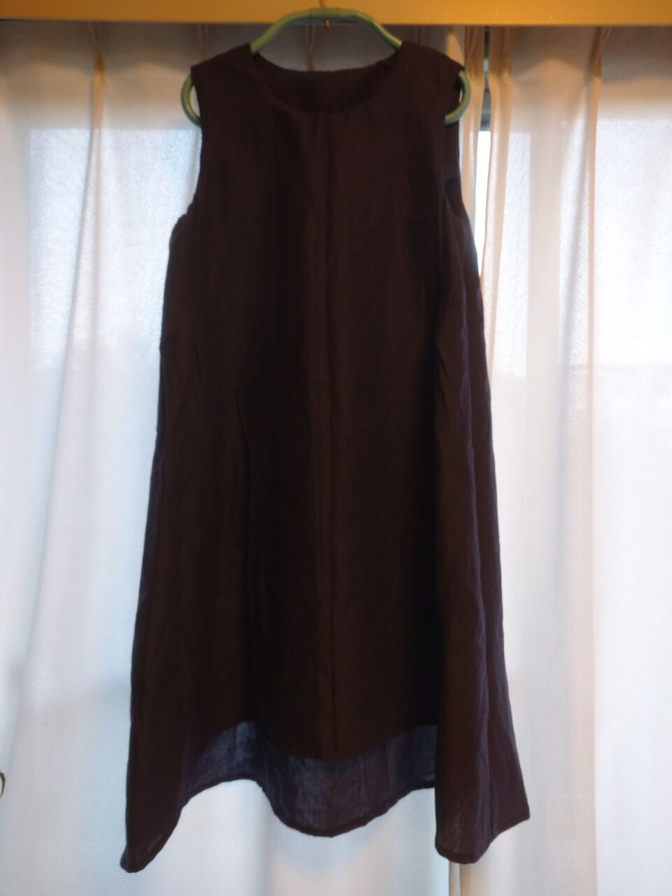 陽が当たると、透け感が出るガーゼ素材です。色が実物と全然違う風に撮れてしまいました。まるで茶色みたいに見えると思いますが、実物はダークネイビーです。