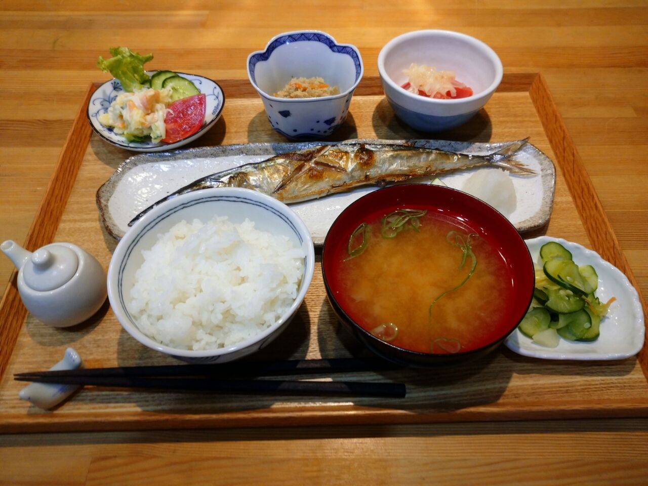 今年は高級魚と化しているというサンマの塩焼き定食なり〜。家人Aは平田牧場のとんかつ定食です。