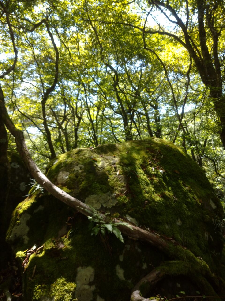 かつて大規模な土石流があったことが分かる巨岩がゴロゴロしていますが、歳月を経て苔むしています。