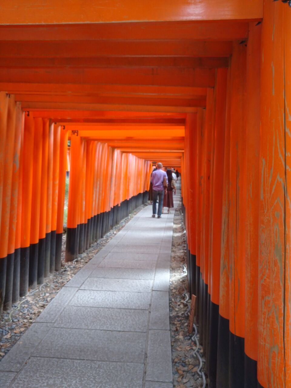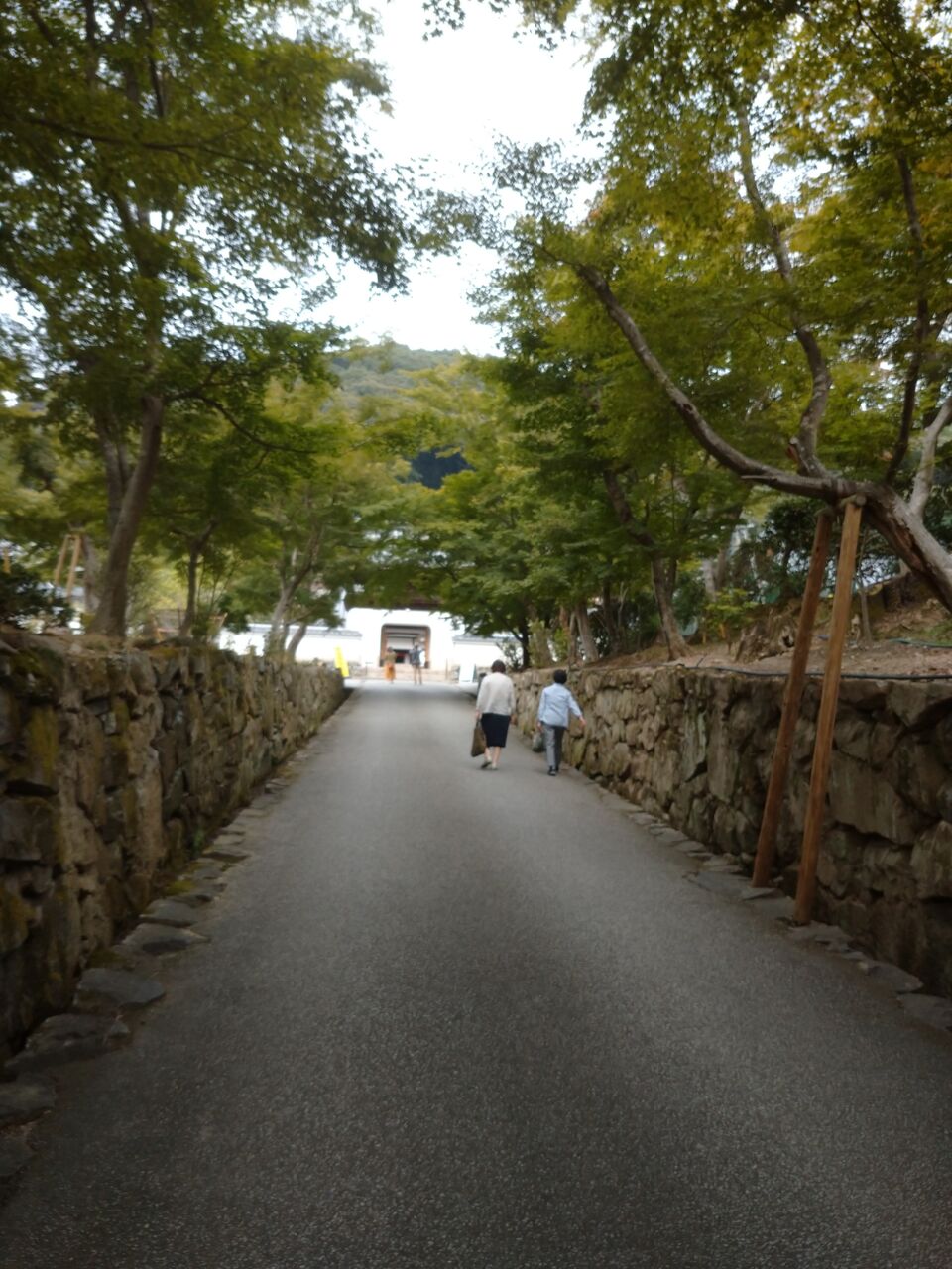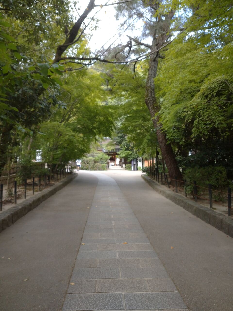 暮れはじめてほとんど人のいない木々に覆われ暗い参道、二人で良かった!