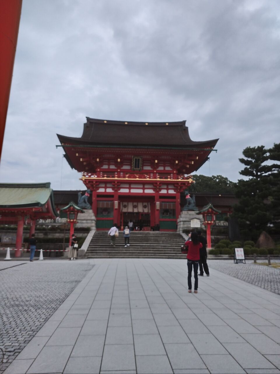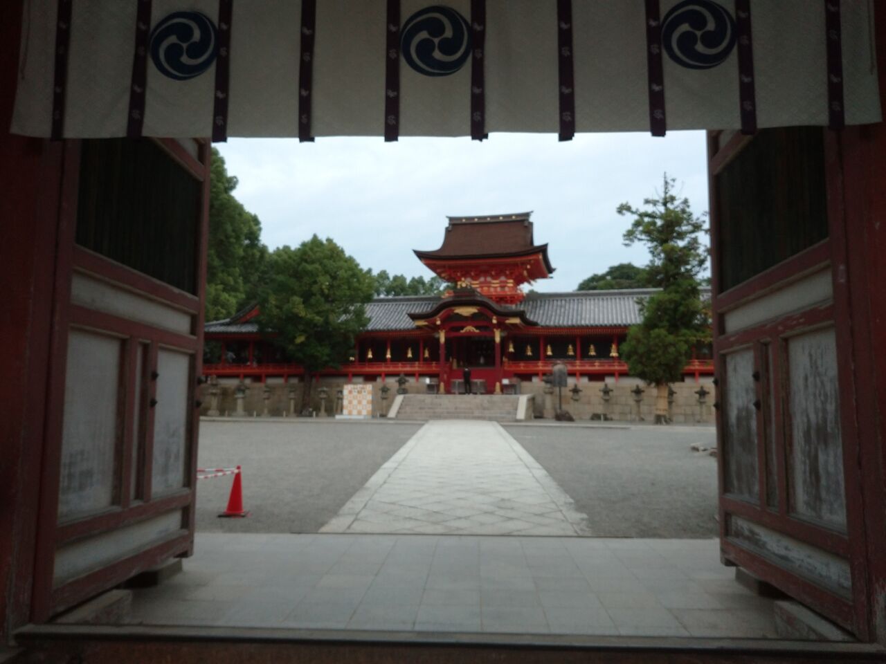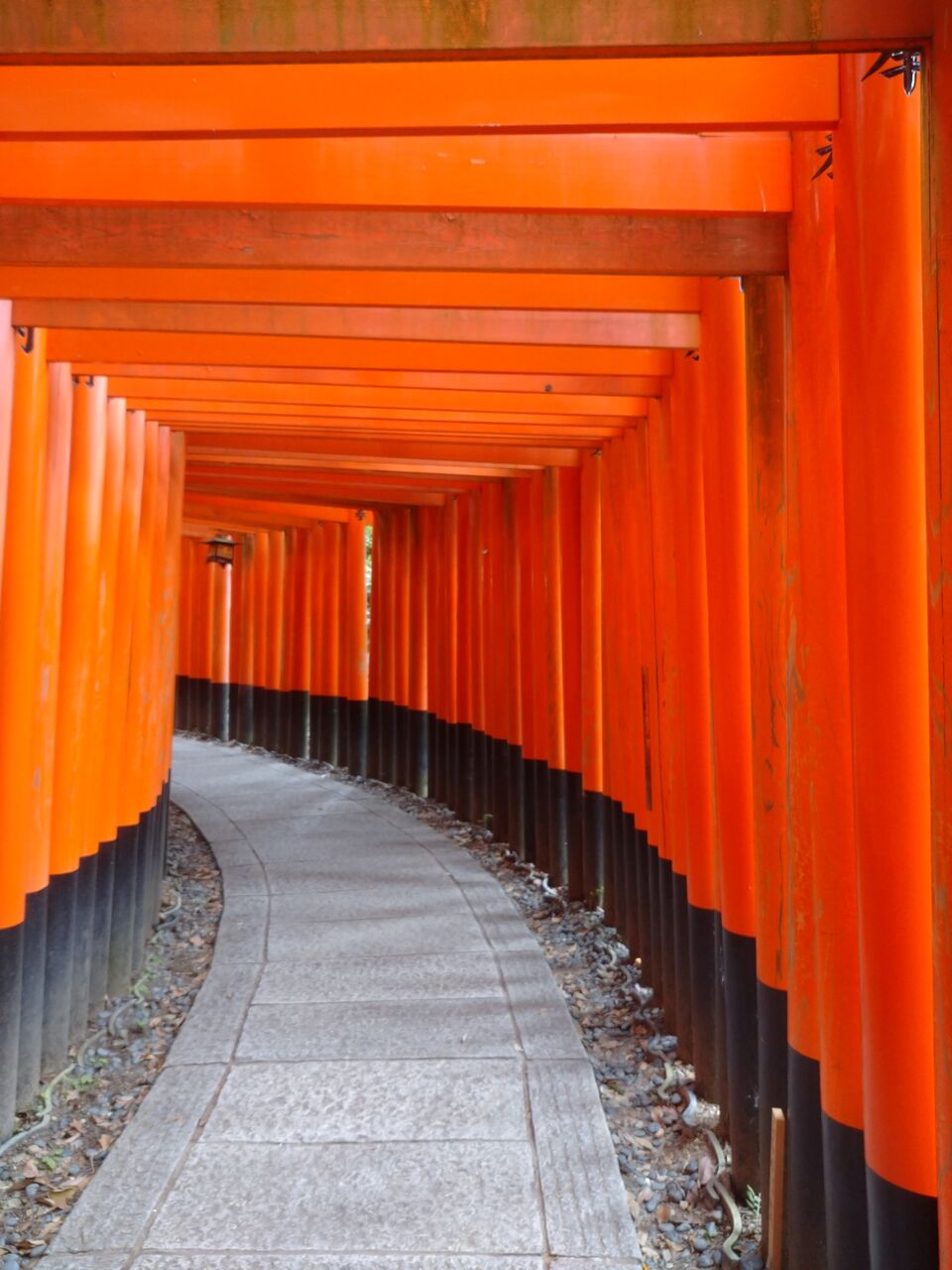 暮れはじめてほとんど人のいない木々に覆われ暗い参道、二人で良かった!