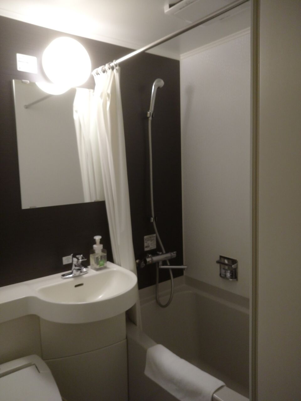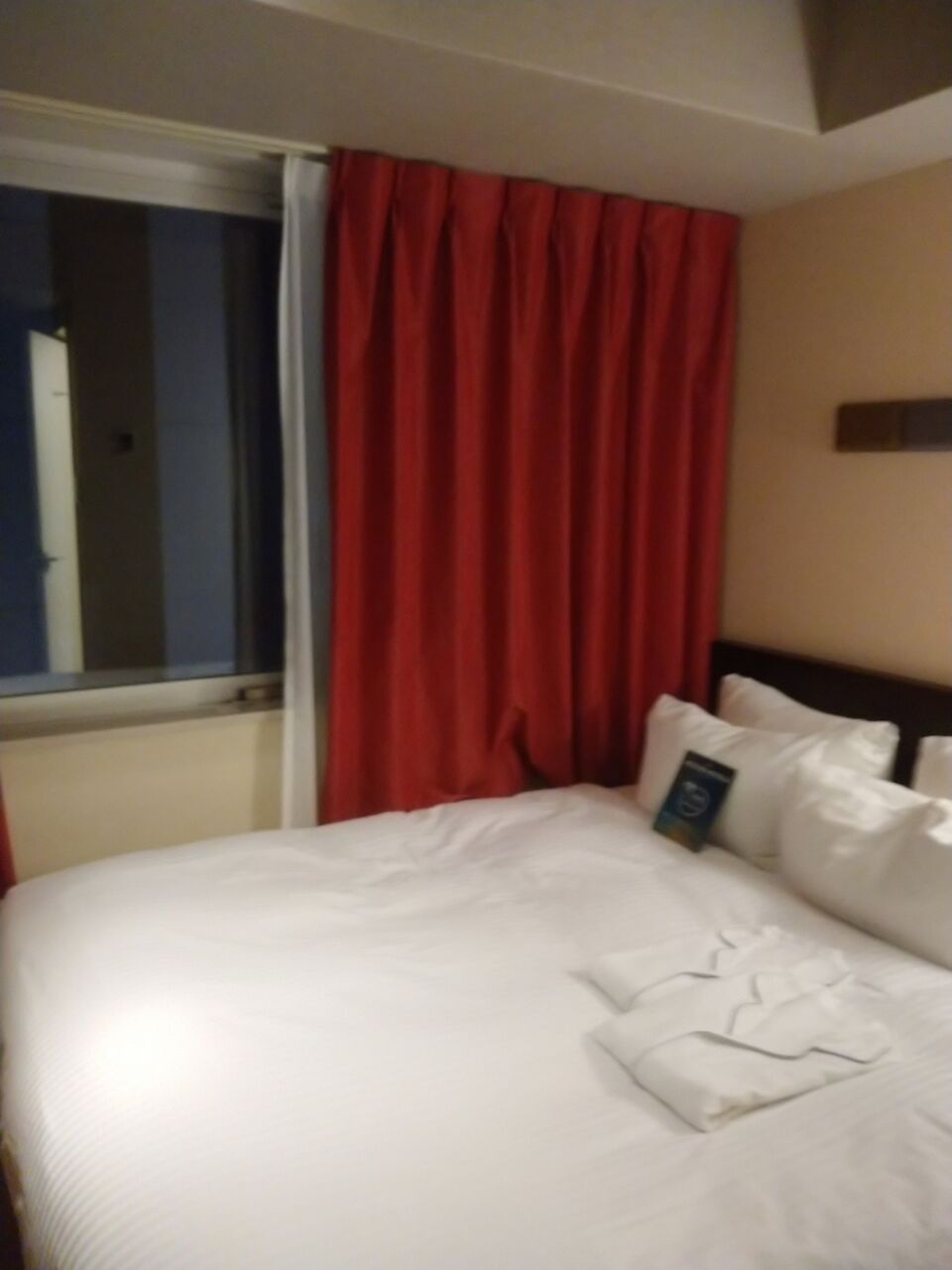 でも、お部屋はなかなか快適でした。フロントは味気ないけど、宿泊フロアとお部屋には小さな和のモチーフが施されているし、コンパクトだけど過不足なし。ユニットバスは小さめだけど、トイレは温水洗浄便座で、どこぞのビジホのそれみたいな、お湯が出るまでちょい待つのとは違って、TOTO製でほかほかでした。 エアコンの設定と寝具も私には合ってたみたいで、歩数計が毎日1万歩越えたためも大きいかと思いますが、熟睡出来ました。