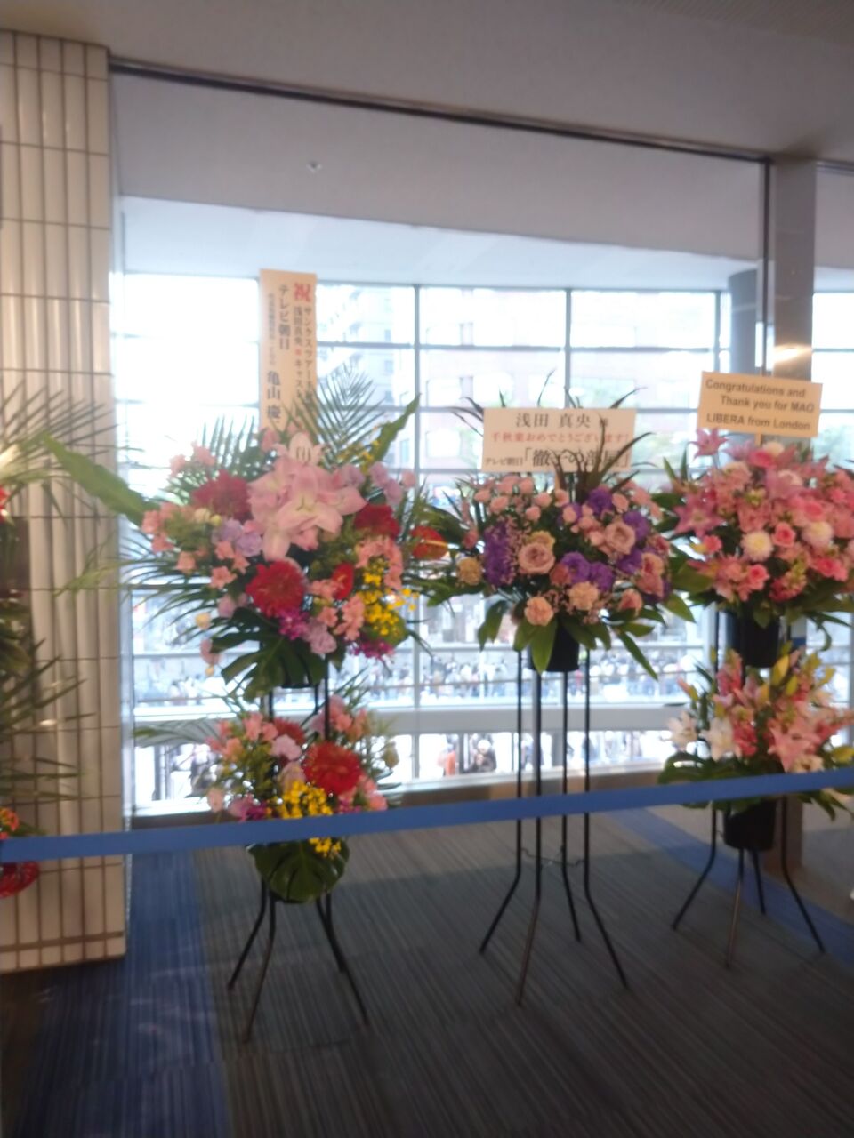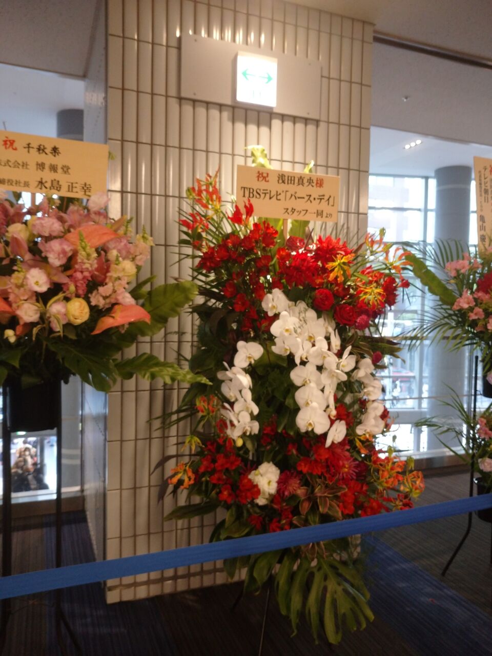 松岡修造さんや、ミッツ・マングローブさん、竹内まりやさん、徹子の部屋など芸能関係者からもありましたが、全国の放送局からの花がすごく多かった………のに、我が山梨県のは、二度くらい往復してみてもなかった。シブチンめ!