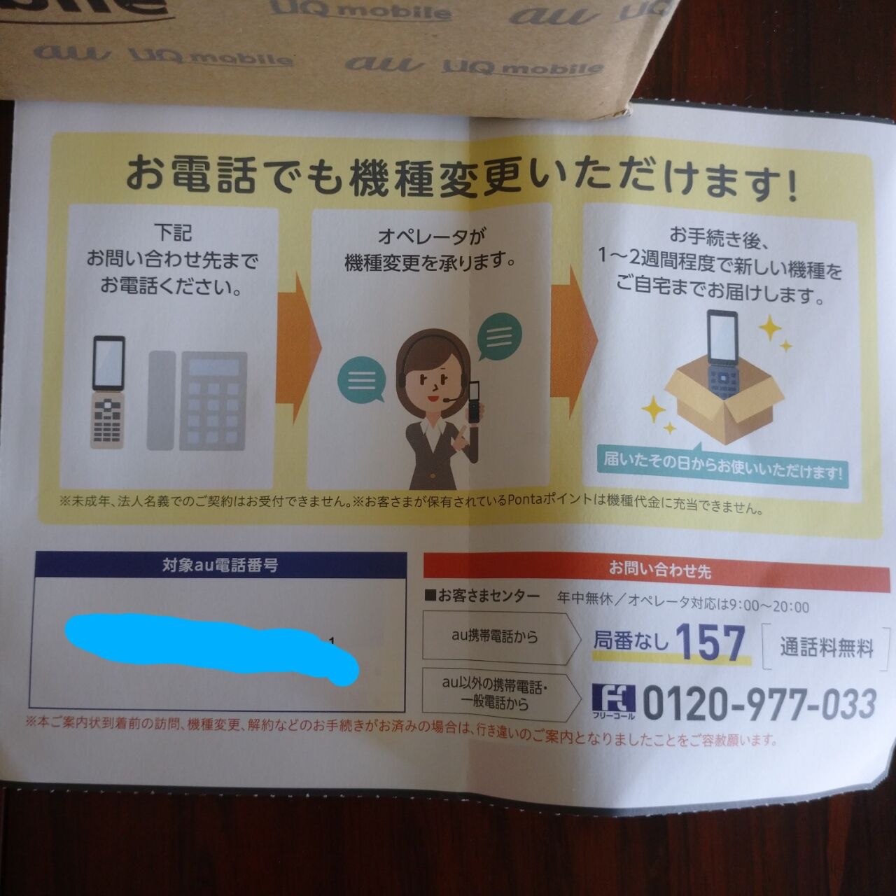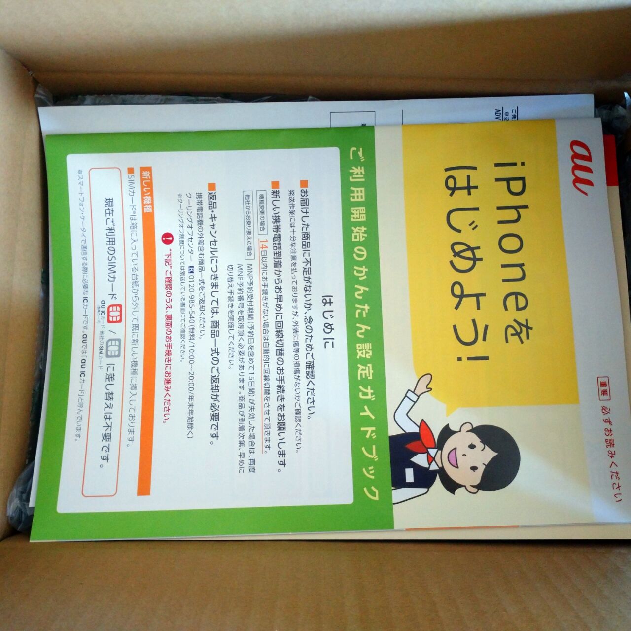 箱を開けたら、まず最初に申込状況確認する書面、その下にこういうのと、auペイの説明書がありました