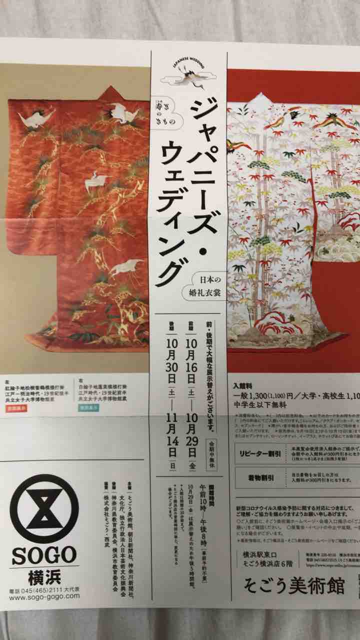 近所の友人を誘って、横浜そごう美術館で開催中の、ジャパニーズ・ウェディング展を見ました。
