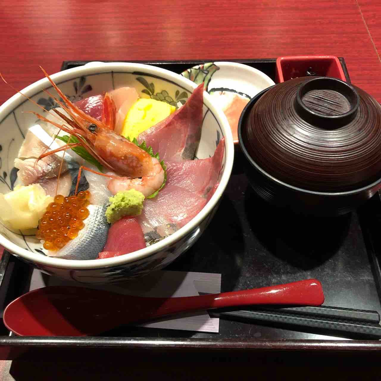 向かいの名鉄エムザの地下飲食店で海鮮丼! 普段の私から思うと、なかなか豪華であります。