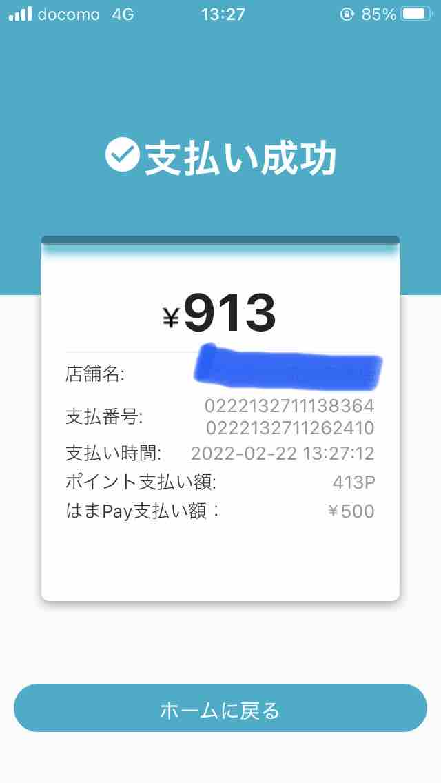 支払い金額は913円ですが、貯まっていたポイントを使い、実際は500円になりました。
