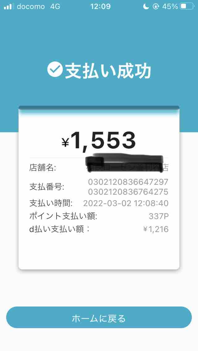 またカード払いになってるかも知れないなと思ったのですが、dポイントアプリを見ると、ポイント数が減ってるっぽい。