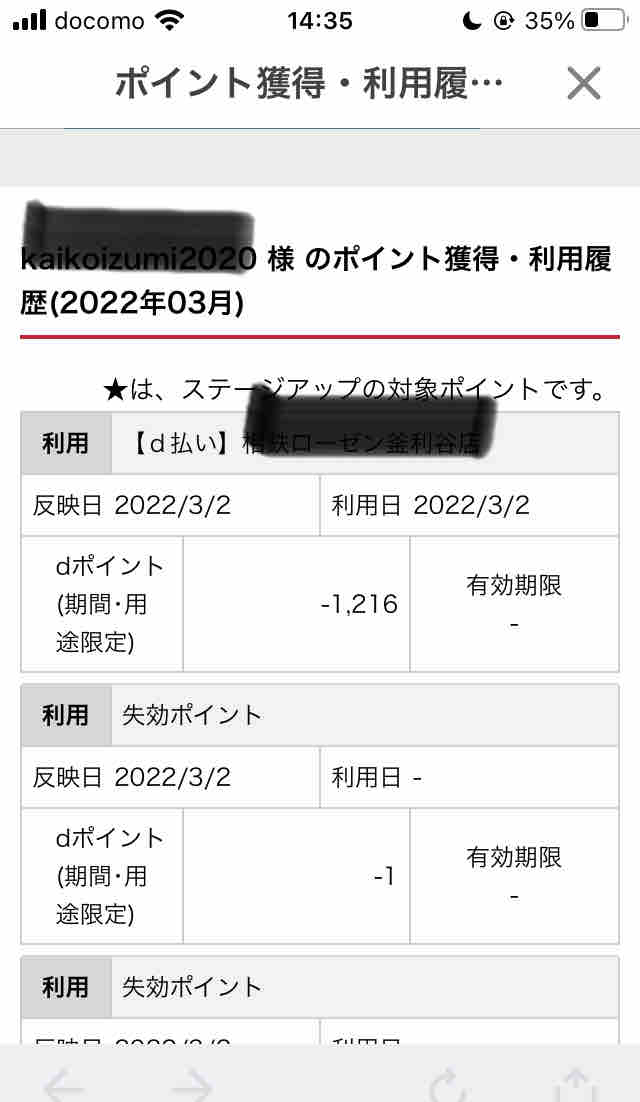 わ〜い、dポイントがちゃんと使われていました。