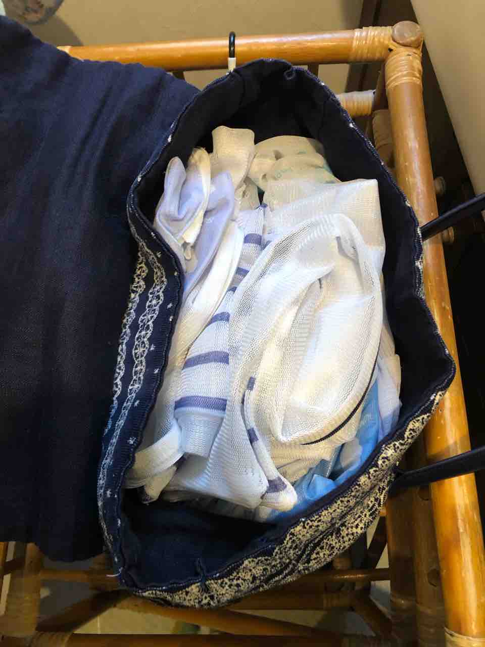 洗面所に置いてある洗濯機の横に立てかけている大きなたらいの中でぐっちゃぐっちゃになっていた洗濯ネットを押し込んでみたのです。