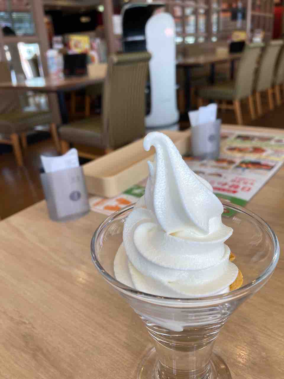 おかげで温玉ドリアの写真撮り忘れました。 温玉ドリアはランチの中で最安値だけあって、それなりに動いていた老婆ずにも少し物足らないかなという感じ。そこで珍しく食後のデザート。これも最も安くつきそうなのを選ぶという安さ最優先!