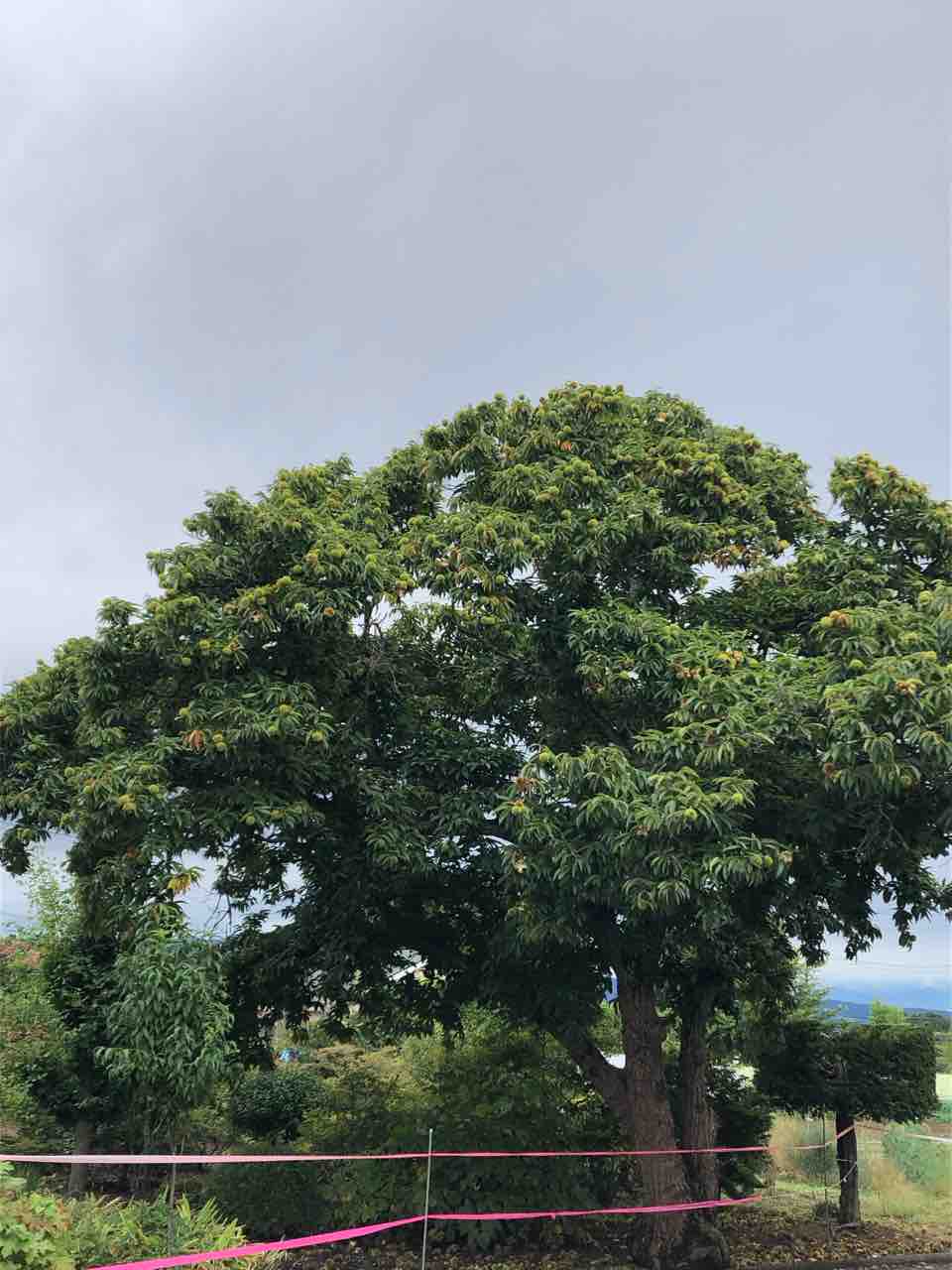 三分一湧水館近くの農家の庭先の大きな栗の木は実がいっぱい。この下で遊んでたら痛い目を見そうです。