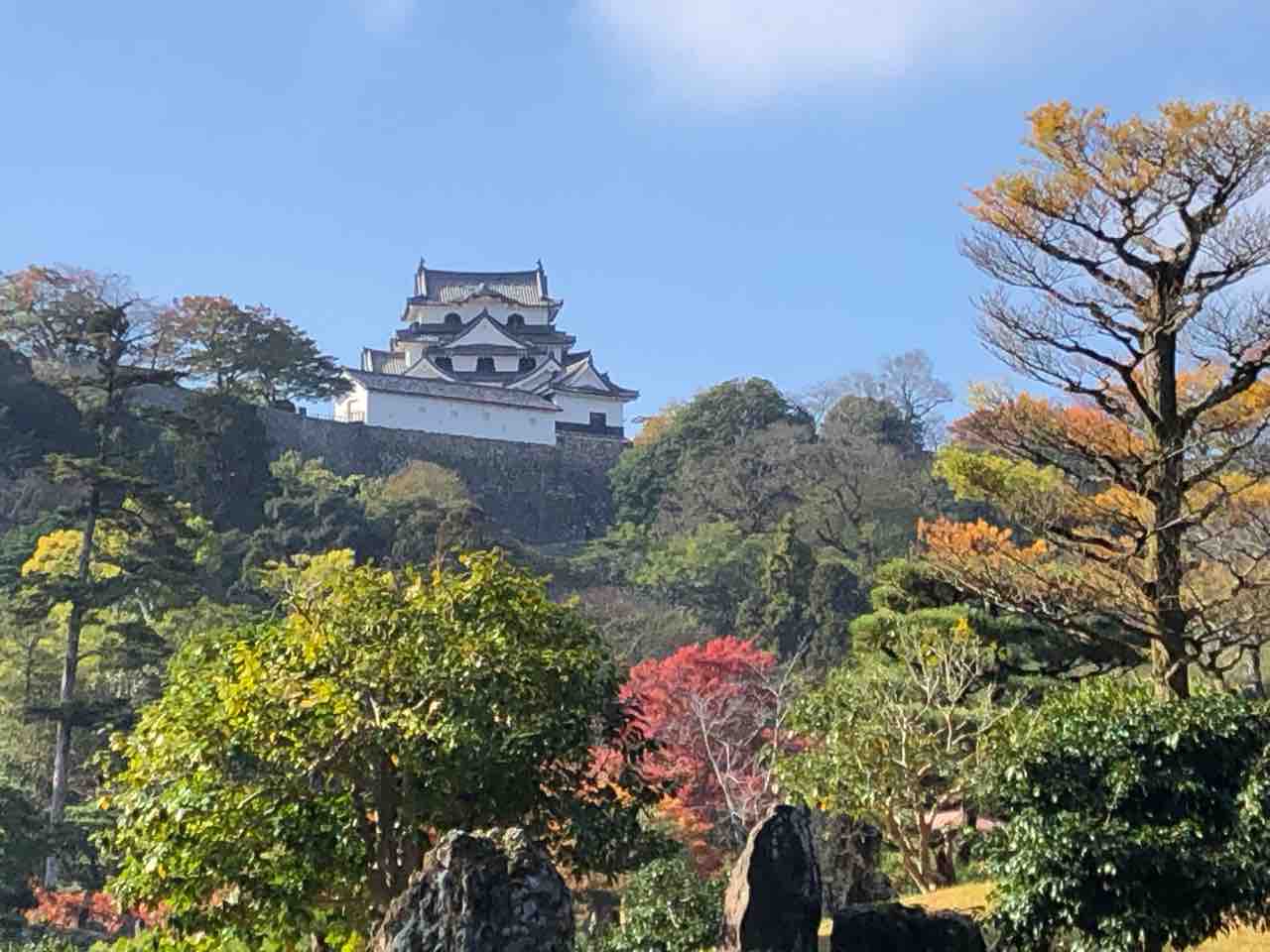思ってたより紅葉も美しく、天守閣はライトがなくても冴え冴えと白く拝みたいような姿でした。