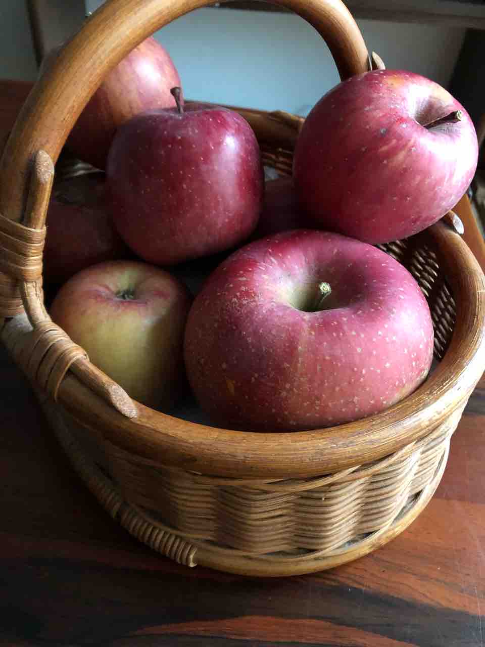 籠の手前に大き目なりんごが映っていますが、こちらはお隣さんがくださったものの最後の1個。柿くばりの御礼だそうですが、兄からのりんごも同じく。お隣さんのりんごは奥様の故郷、山形県のものだそうです。山形と言うと洋梨やさくらんぼのイメージが強いですが、りんごも栽培されているのですね。