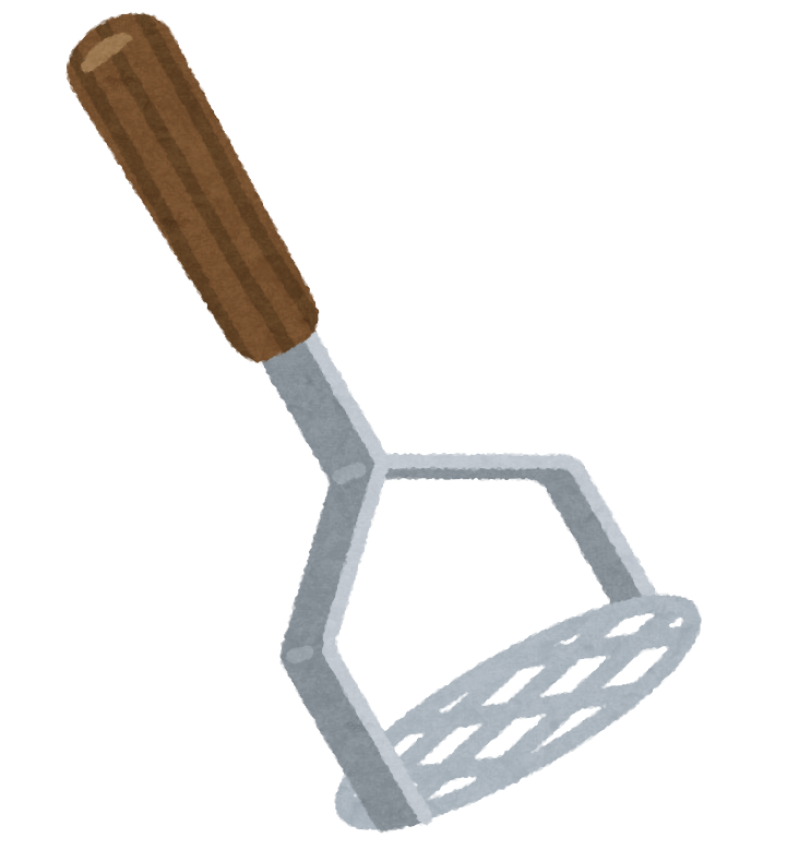ポテトマッシャーでシリコンスチーマーの底は破れないレベルで押すのです。