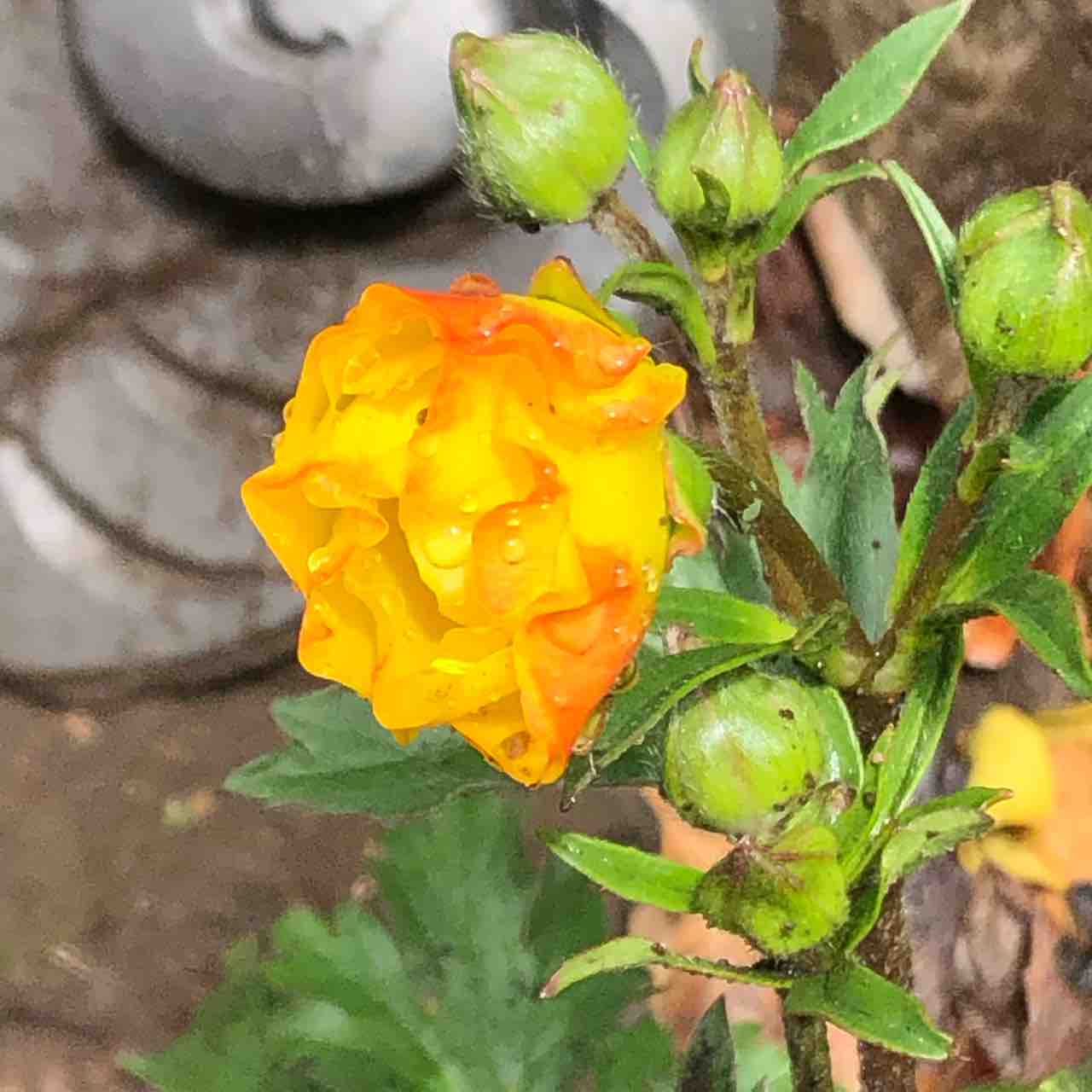 ラナンキュラスのアルテミス、ほんのり紅く染まって開きました。