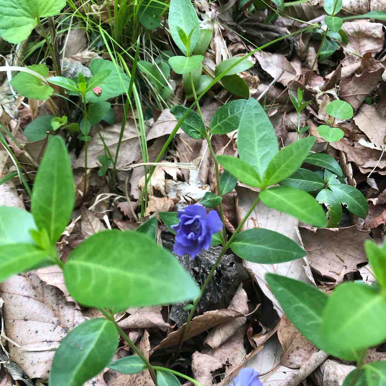 グランドカバーになればと植えた園芸種のツルニチニチソウですが、野生化したのかどうか、花がえらく地味になりましたわ。