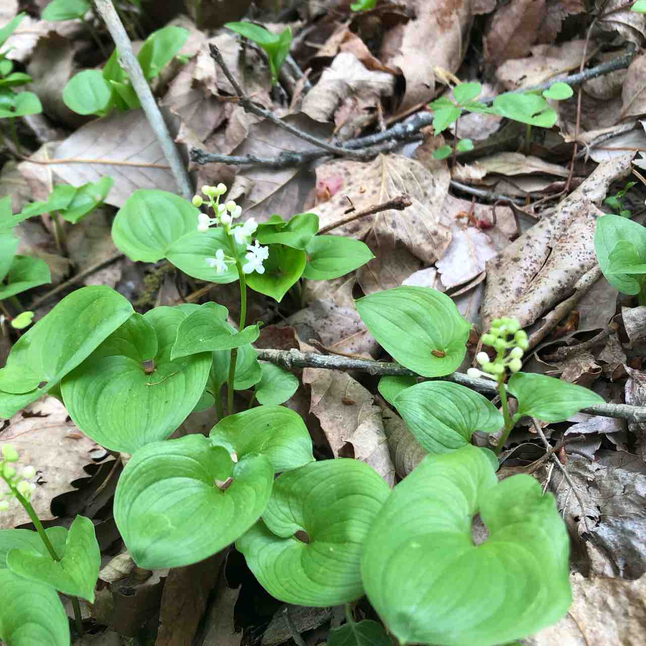 検索をかけて出て来たのはマイヅルソウでしたが、葉っぱはそっくりだけど、マイヅルソウの花はツンツンとシベを出している写真なのでこれと違うのかなぁ? 宿題です。