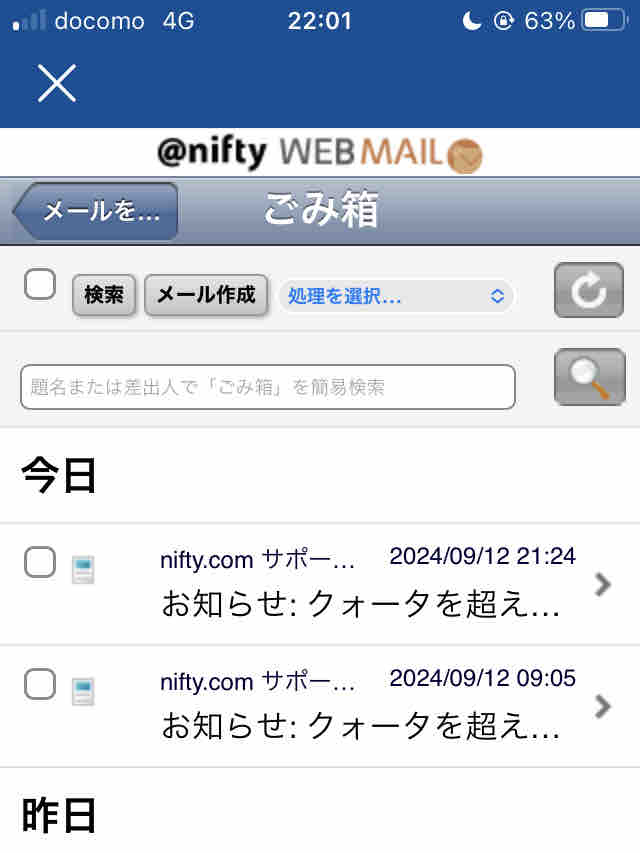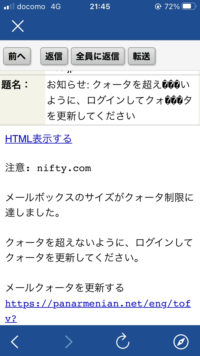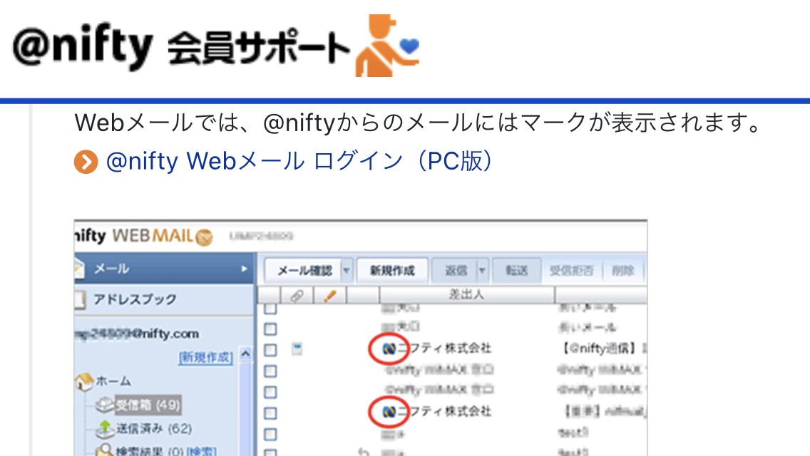 と言うのは昨晩、ニフティのwebメールをチェックしたら、朝9時台と夜9時台にほぼ同文のニフティサポートチームを名乗る発信元からのメールが届いていたからです。